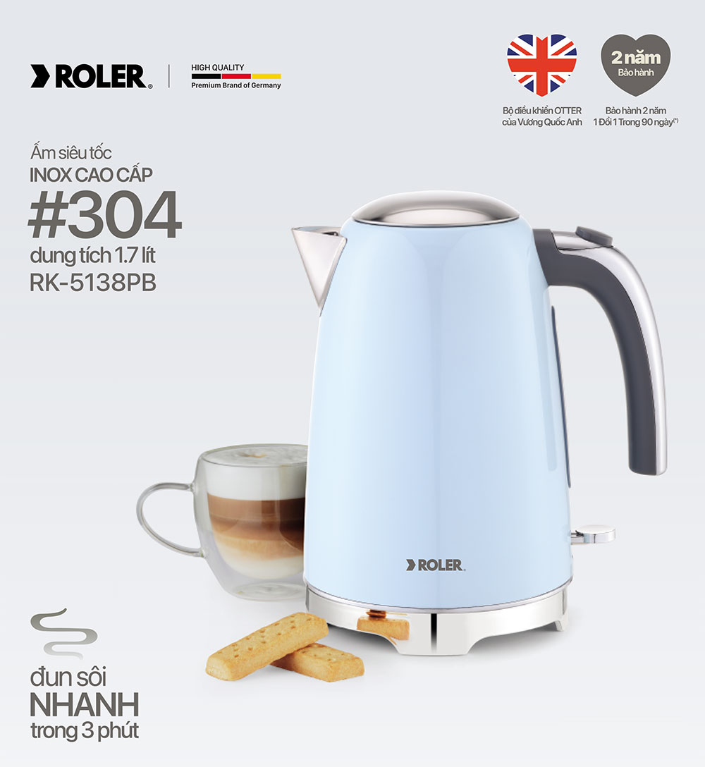 Ấm siêu tốc là sản phẩm tiện lợi không thể thiếu tại các gia đình hiện nay. Chỉ trong vài phút, bạn đã có được nước nóng để sử dụng trong sinh hoạt hàng ngày như pha trà, cafe, hãm mì,... Đặc biệt, với những gia đình có trẻ nhỏ, sản phẩm càng trở nên hữu ích những khi bạn cần pha sữa, nấu cháo. Hơn nữa, bạn có thể đun một chút nước đủ dùng thay vì phải đun nhiều nước như kiểu ấm điện truyền thống. Đây cũng chính là một trong những ưu điểm vượt trội của ấm siêu tốc Roler nói chung và sản phẩm ấm siêu tốc Roler RK-5138PB nói riêng.
