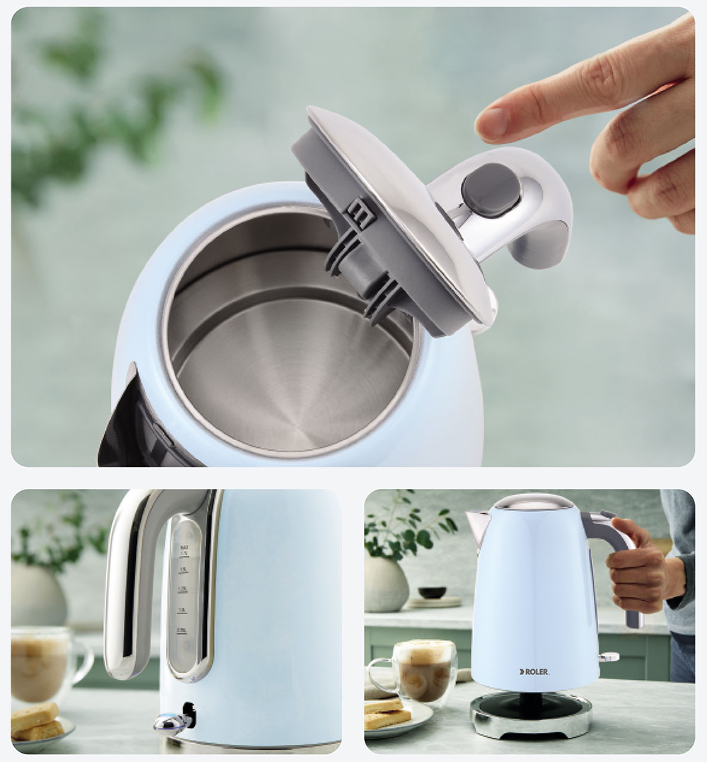 Với công suất lớn 1850-2200W, ấm siêu tốc Roler nhanh chóng đun sôi chỉ trong 2-3 phút, đun nước nhanh sôi, tiết kiệm thời gian, điện năng. Bạn không phải chờ lâu để có nước nóng phục vụ nhu cầu sử dụng tức thời.