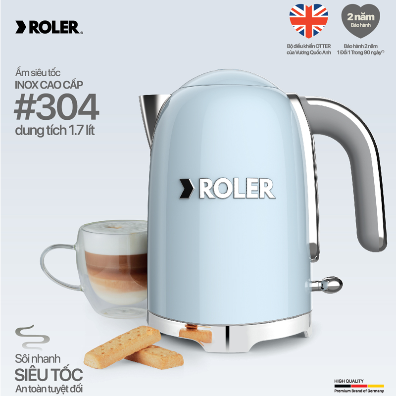 Với công suất lớn 1850W, ấm siêu tốc Roler nhanh chóng đun sôi chỉ trong 2 phút, đun nước nhanh sôi, tiết kiệm thời gian, điện năng. Bạn không phải chờ lâu để có nước nóng phục vụ nhu cầu sử dụng tức thời.