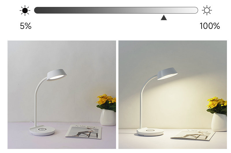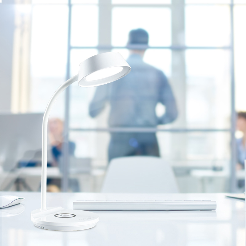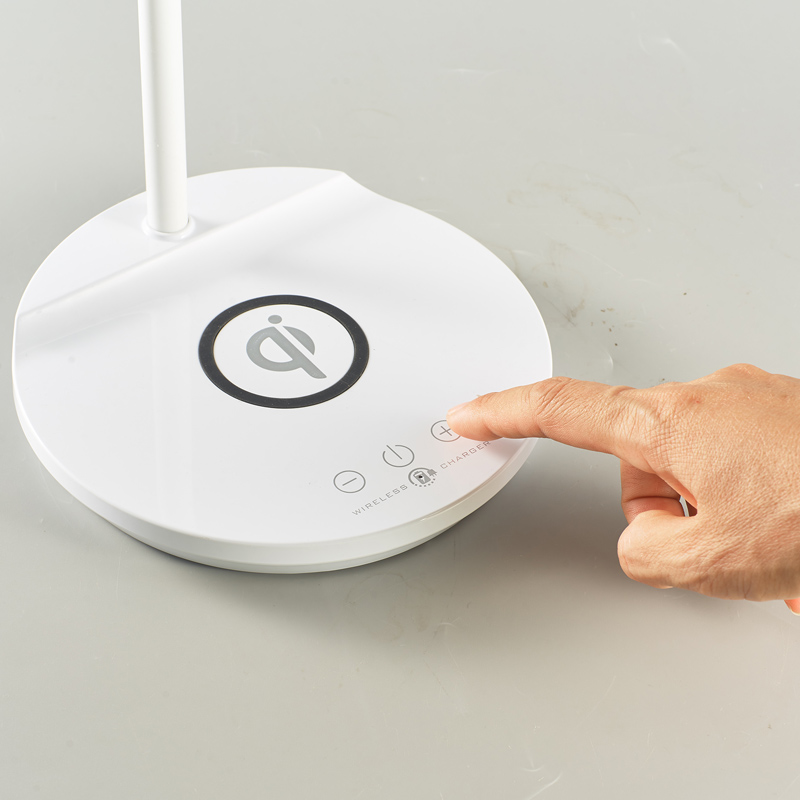 - Tích hợp sạc không dây chuẩn Qi, dễ dàng sạc điện thoại hoặc đồng hồ thông minh ngay trên đế đèn.