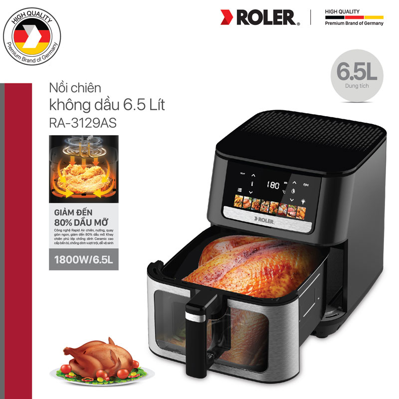 Nồi chiên không dầu điện tử Roler RA-3129AS (6.5L) – Chiên nướng nhanh, ngon, lành mạnh mỗi ngày